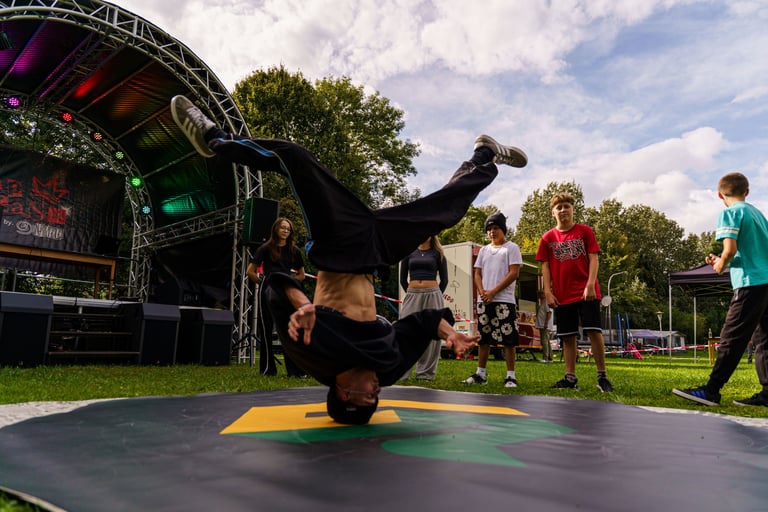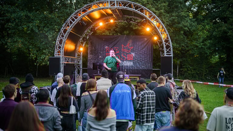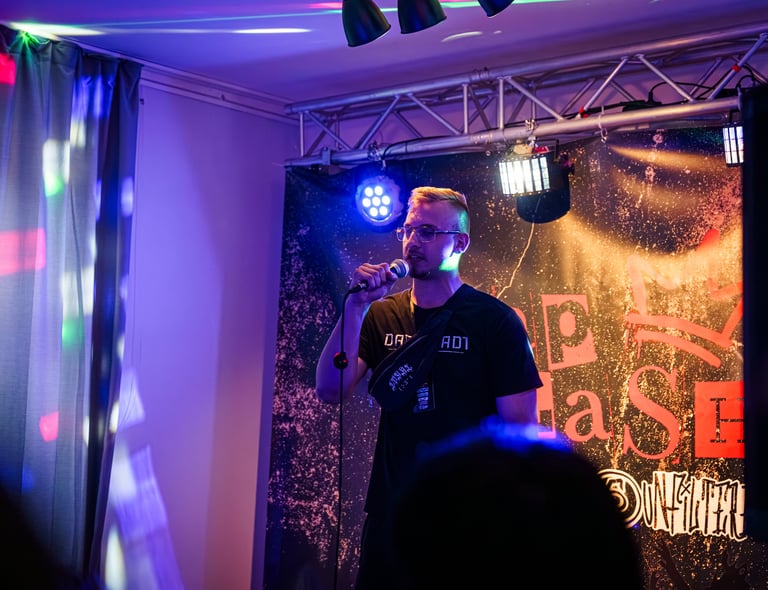 Mit Formaten wie Rap Clash, Open Mics, Breakdance, Graffiti und Gesang bieten wir Künstler:innen die Möglichkeit, sich auszuprobieren, zu wachsen und gemeinsam etwas Neues zu schaffen.